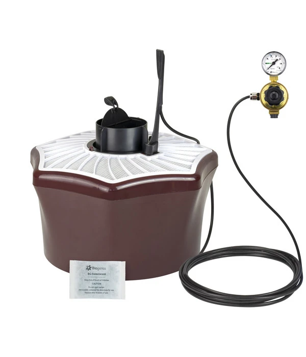 Der Mechanismus der Biogents BG-Mosquitaire CO2 Mückenfalle ist so einfach wie sicher. Dabei ahmt der beiliegende Duftbeutel mit dem BG-Sweetscent Lockstoff die Hautgerüche des menschlichen Körpers nach. Hinzu kommen gezielt eingesetzte Schwarz-Weiß-Kontraste, die für Mücken die visuellen Reize eines Menschen simulieren. Zu guter Letzt wirkt das CO2 als Bestandteil des menschlichen Atems zusätzlich unwiderstehlich anziehend. Das Gerät besitzt ein CO2-Set, Sie müssen nur noch die passende CO2-Flasche besorgen und anschließen.