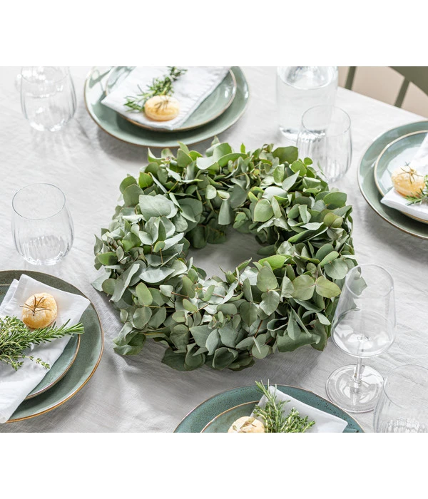 Noch ein Pluspunkt an dem Dehner Kranz Eukalyptus: Er kann absolut vielseitig eingesetzt werden. Als Türkranz an der Haustür- oder Wohnungstür, aber auch als frischer Schmuck an einer Wand oder als Tischschmuck auf dem Esstisch oder einer Abrichte. Und das indoor wie outdoor und zu jeder Jahreszeit, denn auch in getrocknetem Zustand ist er eine trendige Deko-Idee.