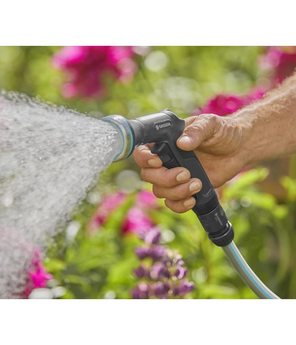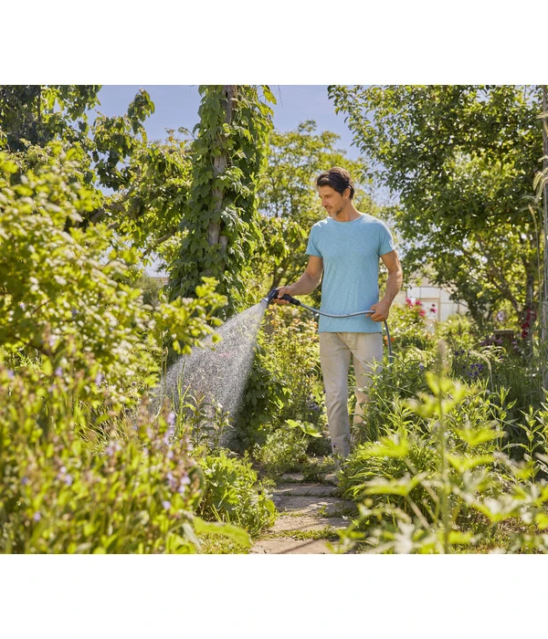 Um das gesunde Wachstum Ihrer geliebten Pflanzen im Garten zu fördern, ist das regelmäßige Gießen sehr wichtig. Machen Sie sich diesen Vorgang leichter mit der Bewässerungsbrause Ecoline von GARDENA. Ihr einhändiger Arretierknopf unterstützt Sie mit seiner stufenlosen Druck-Regulierung. Dadurch können Sie die Wassermenge individuell und im Handumdrehen an die Bedürfnisse und den spezifischen Flüssigkeitsbedarf der verschiedenen Pflanzen anpassen. Das ermöglicht Ihnen eine unkomplizierte Bewässerung von beispielweise Beeten sowie von Pflanzen in Kübeln und Töpfen. Außerdem entlastet die komfortable Bedienung des Arretierknopfs Ihre Hand auf eine angenehme Art und Weise.