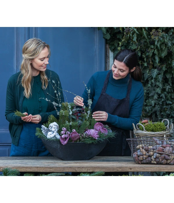 Bevor im Dezember die Adventszeit und die Vorbereitungen für das Weihnachtsfest unsere Gedanken voll in Anspruch nehmen, gibt es im November mit den Feiertagen Allerheiligen und Totensonntag eine Zeit der Einkehr und des stillen Angedenkens an diejenigen, die nicht mehr bei uns sind. Jedes Jahr wählen Sie für diesen Anlass mit Bedacht ein Gesteck, das Ihren Sinn für Ästhetik ebenso demonstriert wie Ihre innige Verbundenheit mit den Toten? Dann sollte in diesem Jahr Ihre Wahl auf das Grabgesteck Unvergessen fallen. In einer eleganten Jardiniere aus wetterfestem Kunststoff wurde ein imposantes Potpourri aus Naturmaterialien in Grün-/Lila-Tönen arrangiert, das auch große Grabstätten stilvoll schmücken wird. Selbstverständlich wurden für das Gesteck nur sehr lange haltbare Materialien eingesetzt, so dass die letzte Ruhestätte Ihrer Lieben bis ins Frühjahr hinein wie gerade frisch geschmückt aussehen wird.