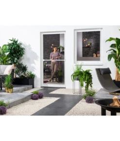 Wenn auch Sie im Sommer gerne die Tür auflassen, um frische Luft zu tanken, aber die lästigen Fliegen draußen bleiben sollen, ist der Fliegengitter Türbausatz Basic der Marke Hecht in der Größe 100 x 210 cm die ideale Lösung für Ihr Zuhause. Der Bausatz überzeugt durch seine besonders einfache Montage und das hochwertige Aussehen, das durch einen Trittschutz aus Aluminium noch verstärkt wird. Während der Rahmen des Fliegengitter Türbausatzes Basic von Hecht aus Aluminium und Kunststoff gefertigt wurde, besteht der Insektenschutz selbst aus wetterfestem Fiberglasgewebe. Dies bietet Ihnen eine hohe Reißfestigkeit bei gleichzeitig guter Durchsicht. Die Verankerung des Fliegengittergewebes erfolgt durch kurzes Drücken auf die Kunststoffverbindung, der integrierte Türmagnet sorgt dann dafür, dass die Fliegengittertür stets sicher schließt und auch bei Wind oder Erschütterungen geschlossen bleibt. Durch die geringe Einbautiefe von 17 mm können Sie den Fliegengitter Türbausatz Basic von Hecht an jedem handelsüblichen Türrahmen befestigen.