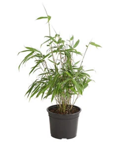 Der Hohe Gartenbambus ist eine imposante Gartenpflanze, die auch im Winter durch ihre immergrünen Blätter besticht. Dieser Bambus bildet keine Ausläufer und wächst aufrecht zu wunderschön dichten und kompakten Horsten heran, die eine Höhe von 4 – 5 m erreichen können. Die dünnen überhängenden Halme des Schirmbambus sind in jungen Jahren zartgrün gefärbt und tendieren mit zunehmendem Alter ins Gelbliche. An ihnen wachsen dicht an dicht kleine, zartgrüne Blätter.