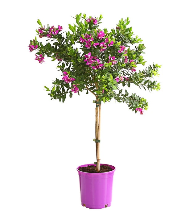 Wärmeliebhaber wie die Kreuzblume bevorzugen vollsonnige Standorte, diese garantieren eine ununterbrochene Blüte. Zu empfehlen ist deshalb eine nach Süden ausgerichtete Terrasse. Selbst bei hochsommerlichen Temperaturen hält sich der Wasserbedarf des Stämmchens in Grenzen. Gegossen werden sollte, sobald die oberste Erdschicht abgetrocknet ist. Dauernässe oder lange Durststrecken behagt der Polygala allerdings nicht. Da die Kreuzblume nur langsam wächst, benötigt sie auch wenig zusätzliche Nährstoffe, eine Düngerzugabe alle vierzehn Tage ist somit völlig ausreichend. Ein Kürzen der Triebe ist während des Sommers zu jederzeit möglich, damit das Stämmchen auch seine hübsche Form behält.