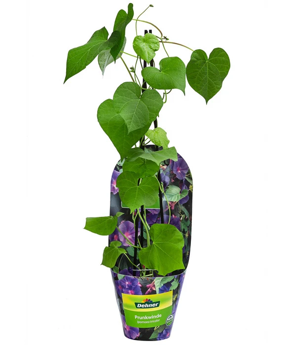 Der fleißige Kletterer erobert an Spalieren Hauswände und hohe Zäune im Nu und bietet daher einen einjährigen, reich blühenden Sichtschutz. Eine Kletterhilfe, an der die Pflanzen Halt finden, ist jedoch frühzeitig anzubringen, damit die Prunkwinden ihre Wuchslänge voll zur Geltung bringen können. Unterstützen Sie die Pflanze mit einem Rankgitter oder gespannten Schnüren, an denen die Ipomoea ihre Triebspitzen umwickeln kann. Selbst kahle Mauern oder langweilige Obelisken, werden mit dieser Pflanze zum echten Blickfang. Eine Kultur im Kübel oder Balkonkasten ist mit der Ipomoea ebenfalls möglich.